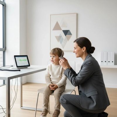 Most appointments start with a quick ear health check, because temporary issues in the ear can reduce hearing. Middle ear infections and glue ear are common in young children, and fluid can cause a temporary, mild hearing reduction that may still need monitoring or treatment